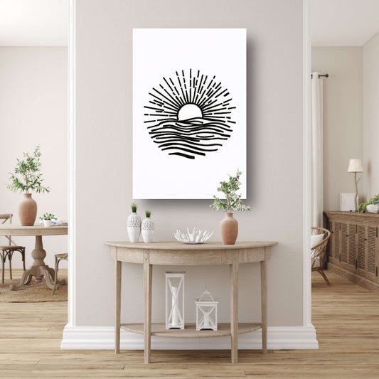 Zwarte en witte minimalistische zonsopkomst canvas met baklijst