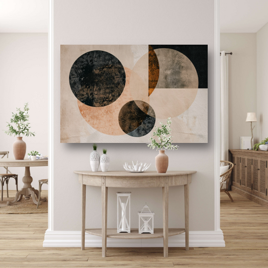 Overlappende cirkels in neutrale tinten canvas met baklijst