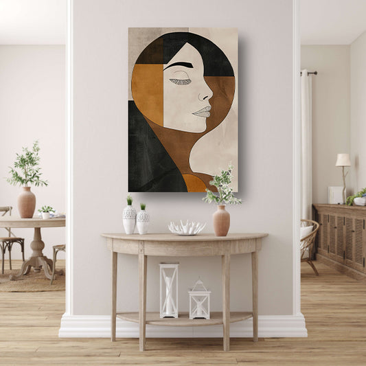 Abstract Portret in Monochrome Beige en Bruin canvas met baklijst