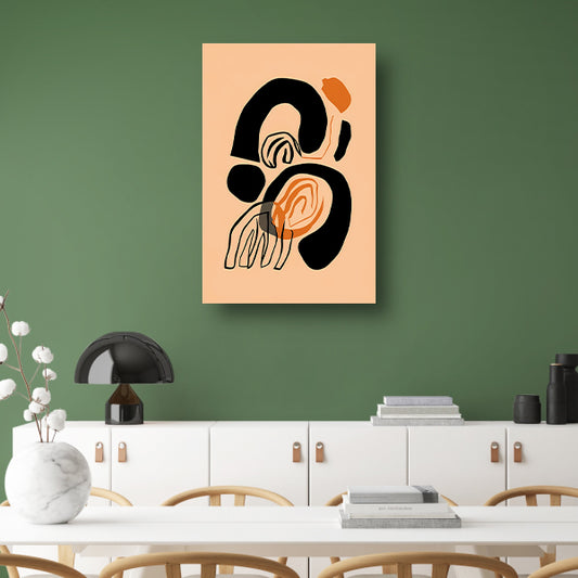 Abstracte Vormen en Lijnen in Oranje en Zwart canvas met baklijst