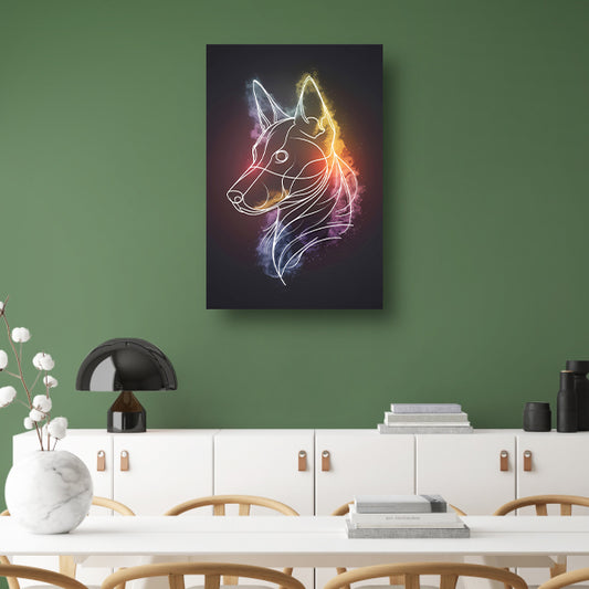 Wolf Silhouet met Abstract Kleurenspectrum canvas met baklijst