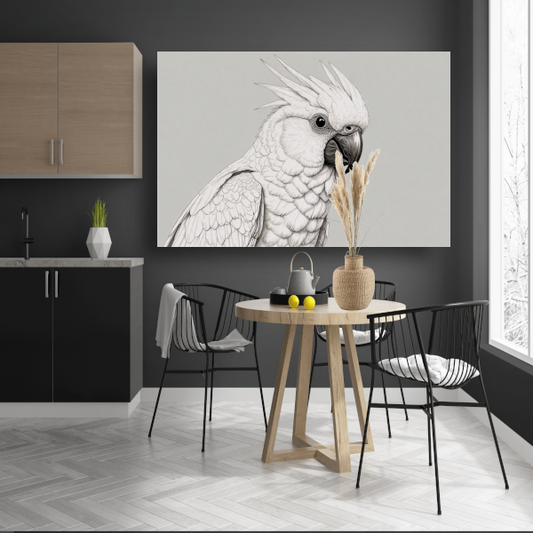 Elegante Zwart-Witte Kaketoe Illustratie canvas met baklijst