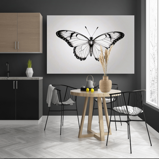 Minimalistische zwart-wit vlinder illustratie canvas met baklijst