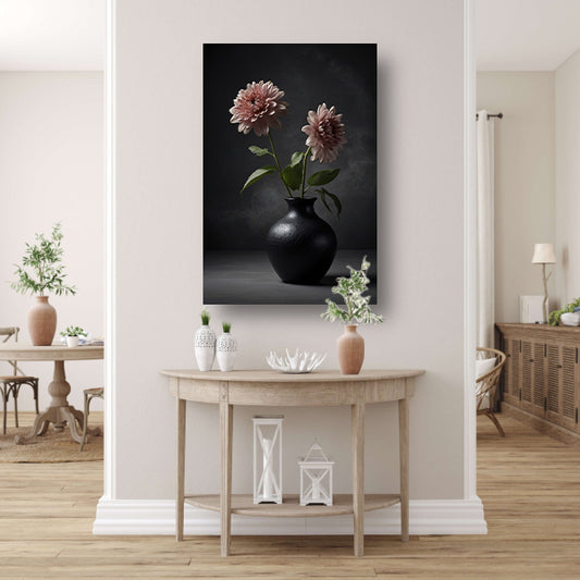 Elegante zwarte vaas met beige bloem canvas met baklijst