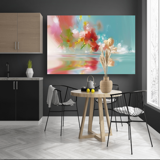Vloeiende Abstractie in Roze en Turquoise canvas met baklijst