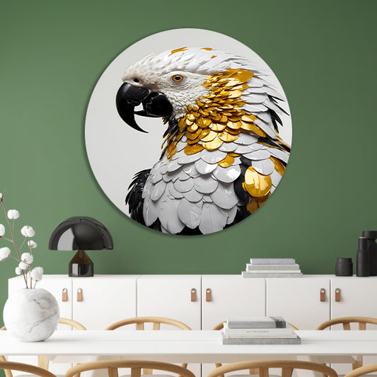 Majestueuze Papegaai in Goud en Wit forex muurcirkel