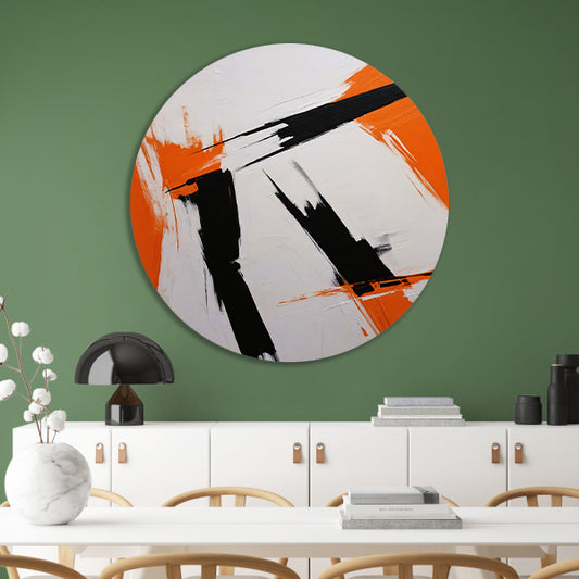 Dynamische abstractie in zwart, wit en oranje forex muurcirkel