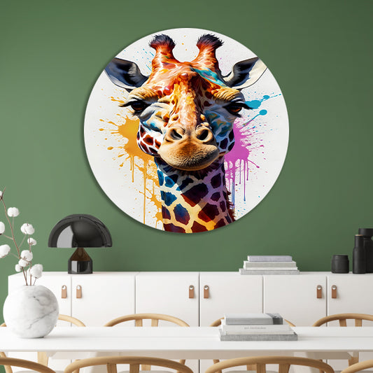 Modern kleurrijk giraffehoofd in popartstijl forex muurcirkel
