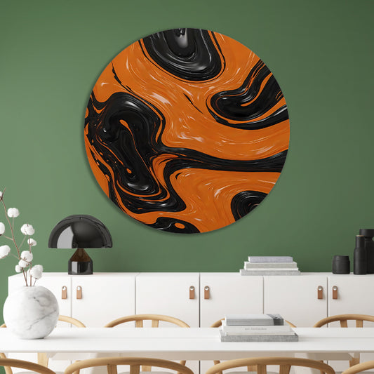 Dynamische Oranje en Zwarte Abstracte Kunst forex muurcirkel