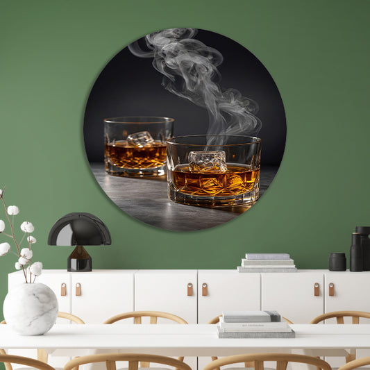 Elegante whiskeyglazen met rook op zwarte achtergrond forex muurcirkel