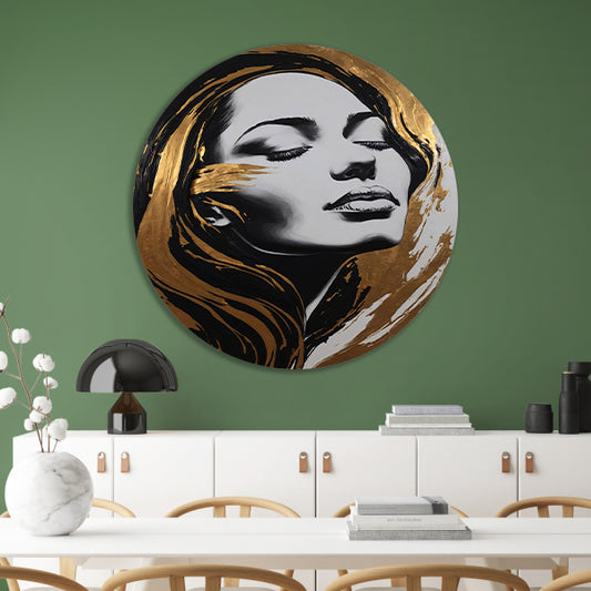 Vrouwengezicht in Zwart, Wit en Goud forex muurcirkel