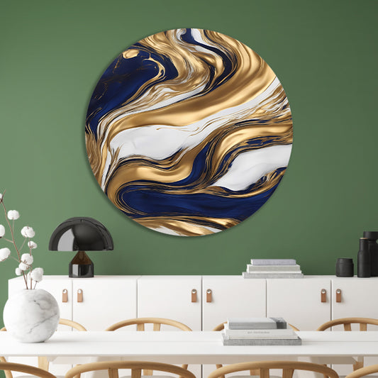 Golvend Goud en Marine Abstract Ontwerp forex muurcirkel