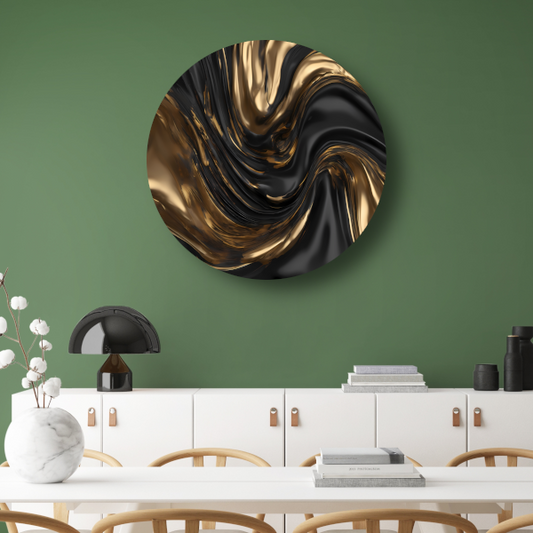 Dynamische Zwarte en Gouden Abstractie forex muurcirkel