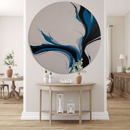 Dynamische Zwarte en Blauwe Abstracte Compositie forex muurcirkel