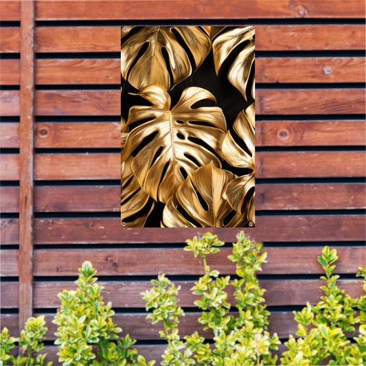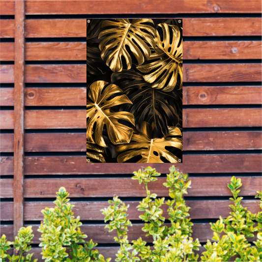 Luxe Gouden Monstera Bladeren op Zwart tuinposter