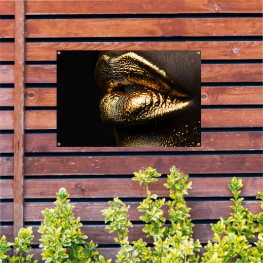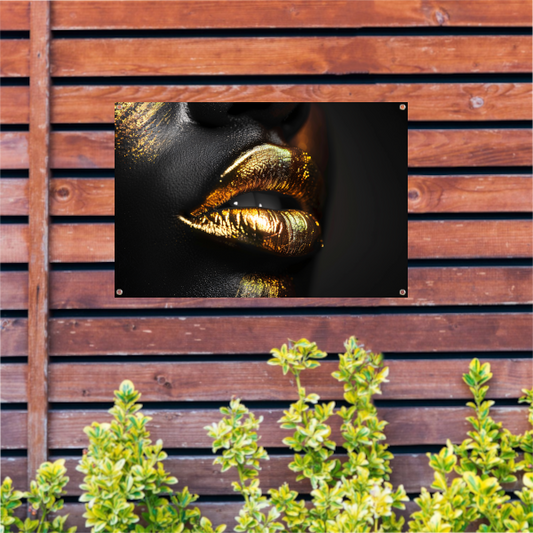 Zwarte Achtergrond met Gouden Lippen tuinposter