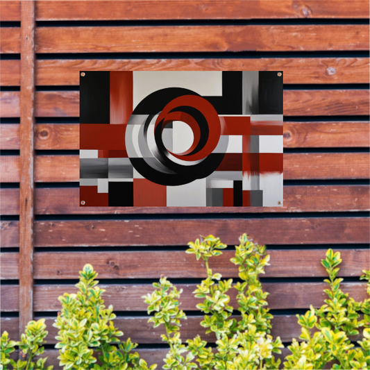 Abstract minimalisme met rode en zwarte cirkels tuinposter