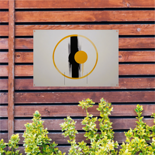 Geel-Zwarte Abstractie met Dynamische Cirkels tuinposter