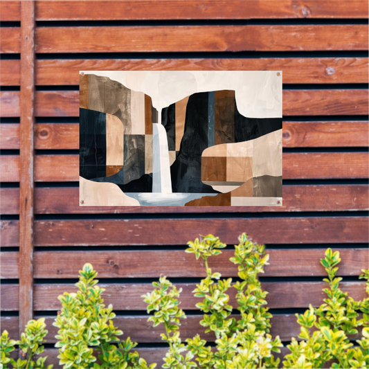 Minimalistische Waterval in Aardetinten Abstract tuinposter