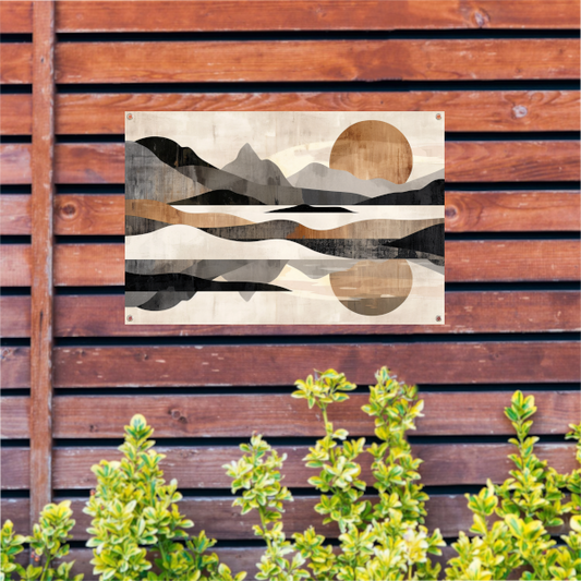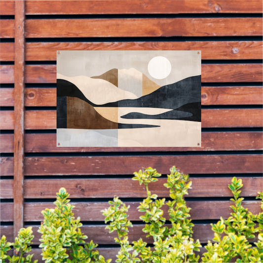 Abstracte bergen in aardetinten minimalistisch design tuinposter