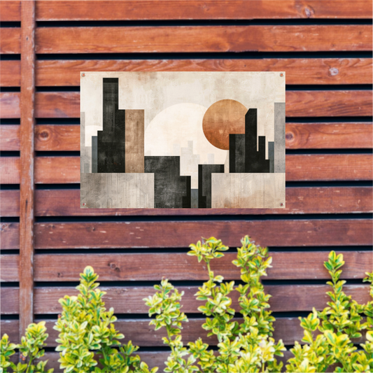 Stedelijke Skyline in Minimalistische Tinten tuinposter