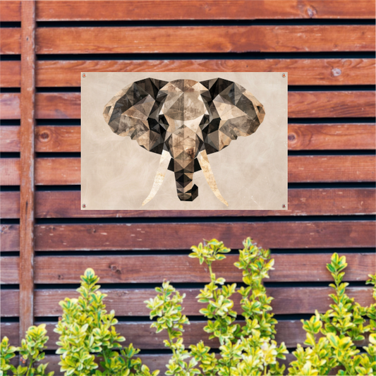 Abstracte Olifant in Geometrische Sepiatonen tuinposter