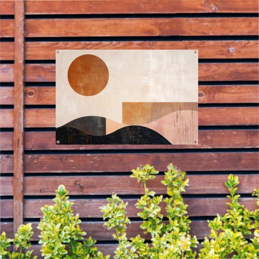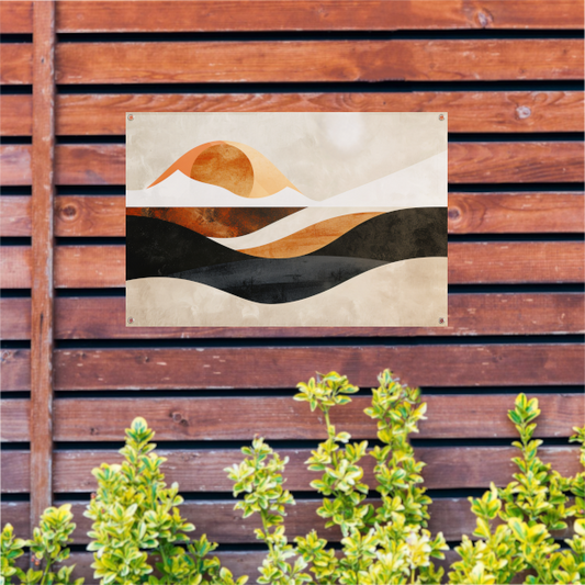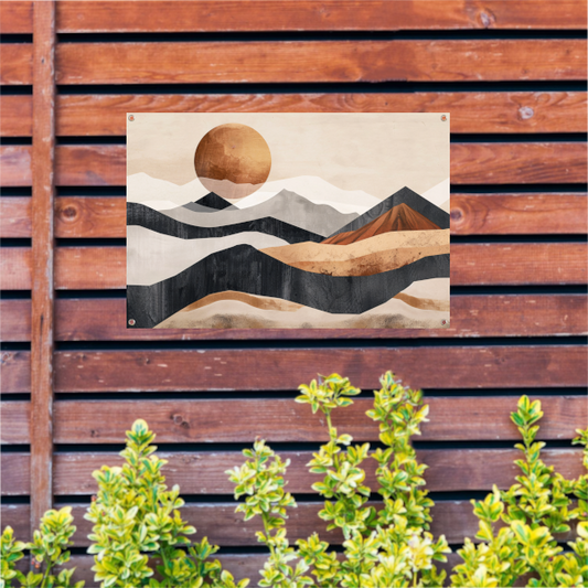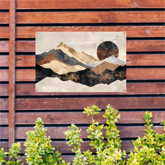 Monochrome Bergen en Zonsondergang in Abstract tuinposter