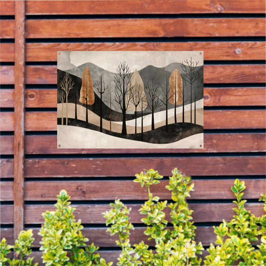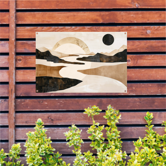 Abstract Rivierlandschap in Neutrale Tinten tuinposter
