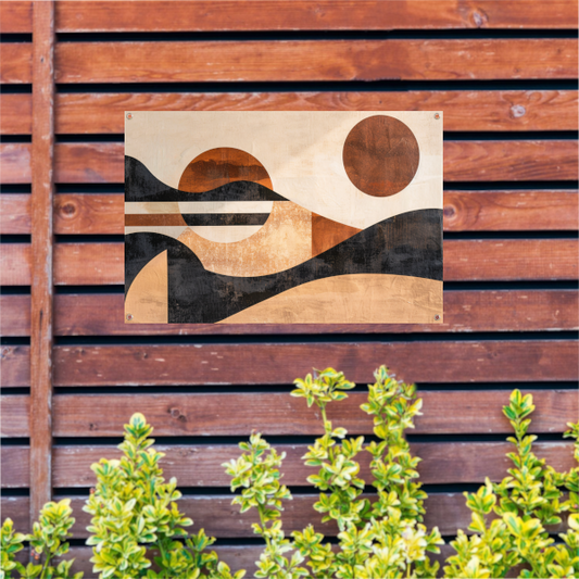 Golvende Abstractie in Warme Aardekleuren tuinposter