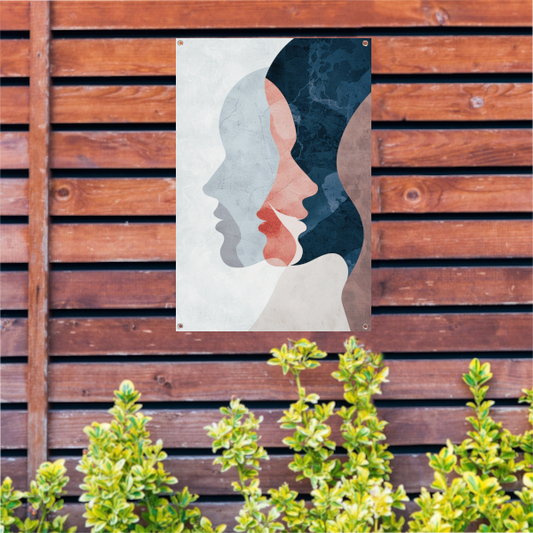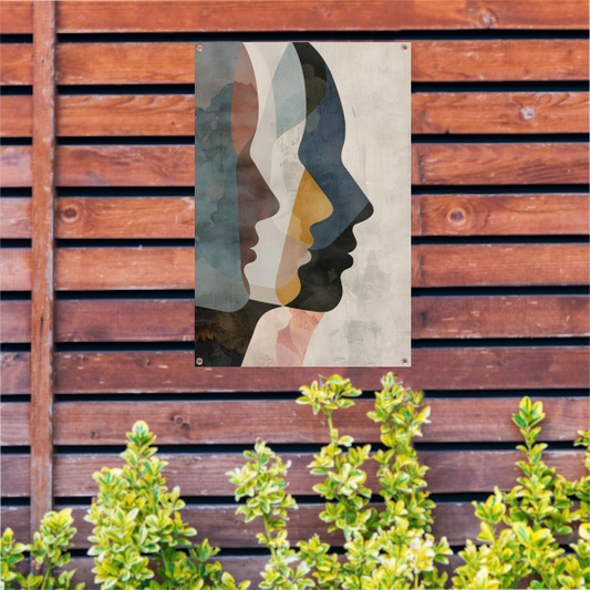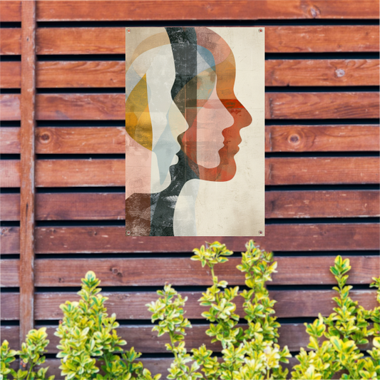Abstracte Menselijke Profielen in Harmonieuze Kleuren tuinposter