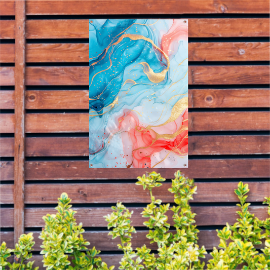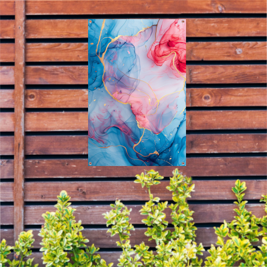 Abstracte Symfonie in Blauw en Roze tuinposter