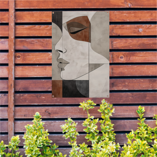 Abstract Portret in Monochrome Beige en Bruin tuinposter