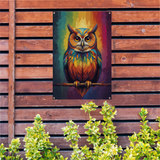 Kleurrijke Uil Abstract Artistiek Ontwerp tuinposter