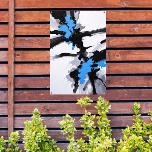 Energetische abstractie van blauw, zwart en wit tuinposter