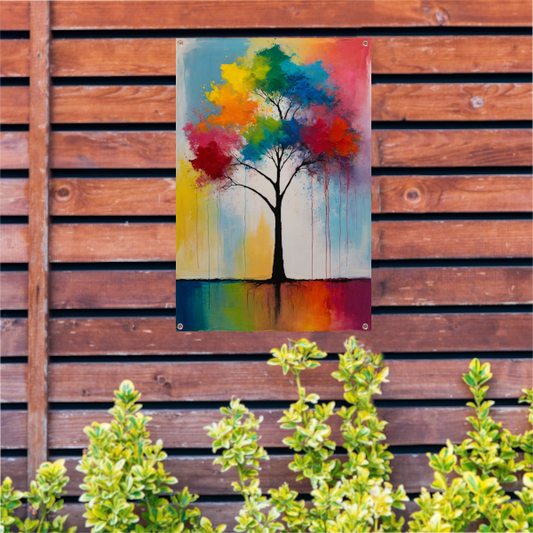 Abstracte Boom met Kleurrijke Uitspattingen tuinposter
