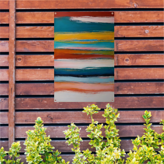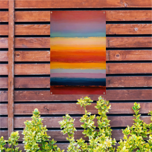 Abstracte horizon in rood, geel en blauw tuinposter