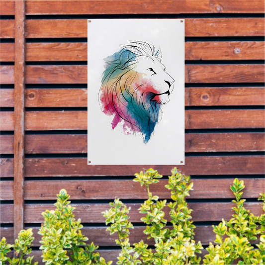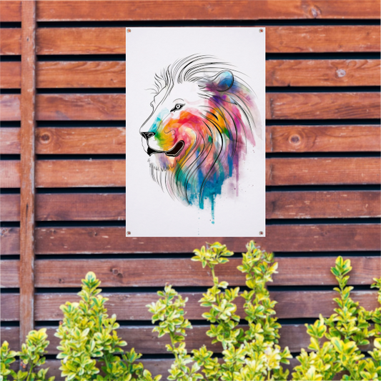 Abstracte Kleurrijke Leeuw in Lijnen tuinposter