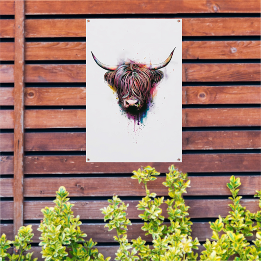 Explosie van Kleur: Abstracte Schotse hooglander tuinposter