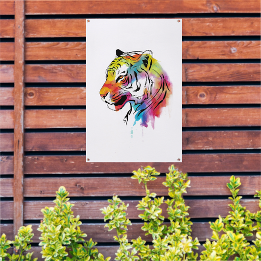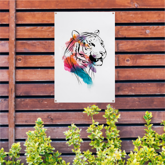 Expressieve Kleurrijke Tijger Line Art tuinposter