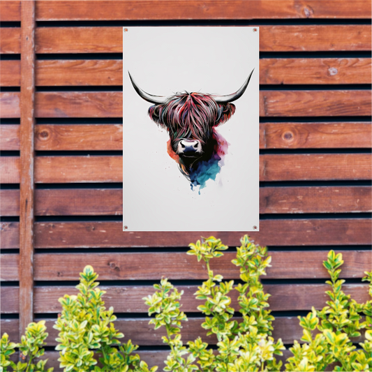 Moderne waterverfstijl Schotse hooglander met kleur tuinposter
