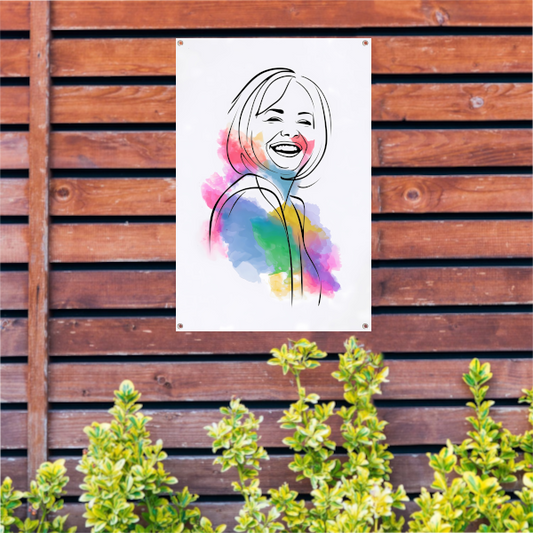 Een spectrum van vreugde: Lachend vrouwenportret tuinposter