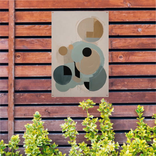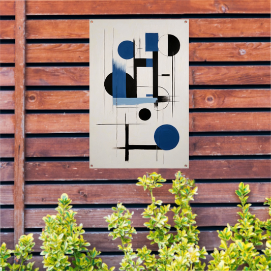 Geometrische Abstractie in Beige en Blauw tuinposter