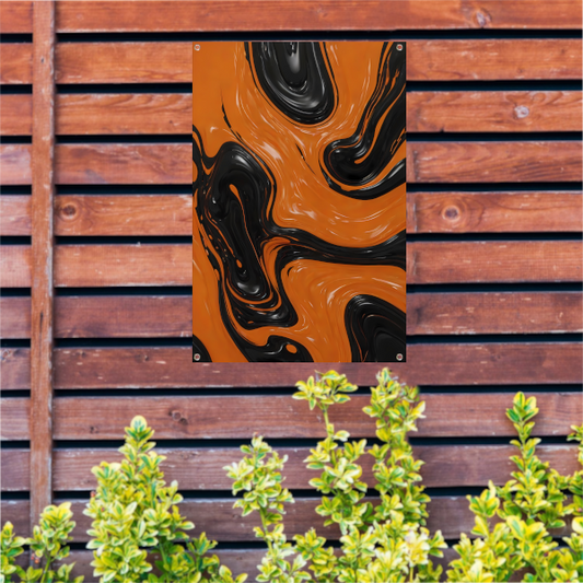 Dynamische Oranje en Zwarte Abstracte Kunst tuinposter