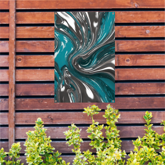 Dynamische turquoise zilveren abstracte werveling tuinposter