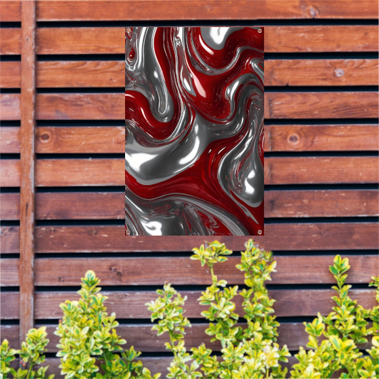 Abstracte Zilveren en Rode Vloeiende Dynamiek tuinposter