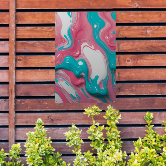 Vloeiende Abstractie in Roze en Turquoise tuinposter