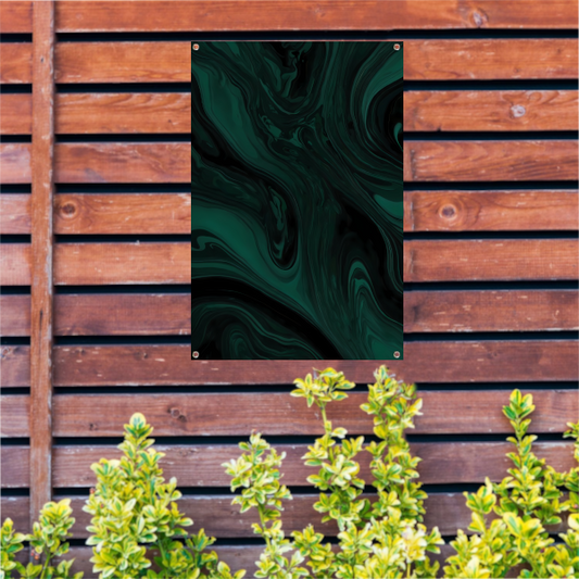 Abstracte Donkergroene en Zwarte Vloeibare Dynamiek tuinposter