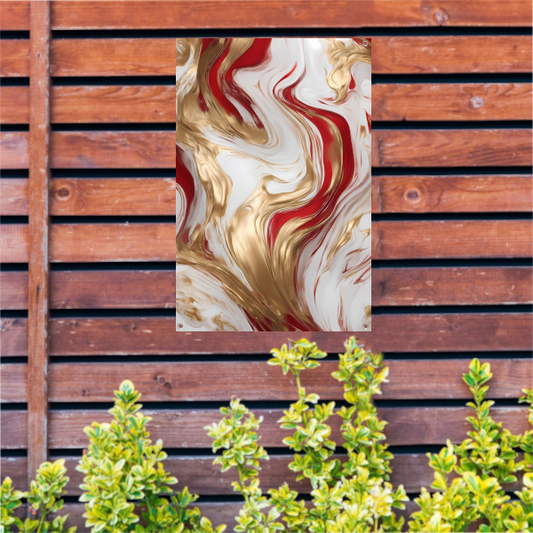Gouden en Rode Abstracte Vloeibaarheid tuinposter
