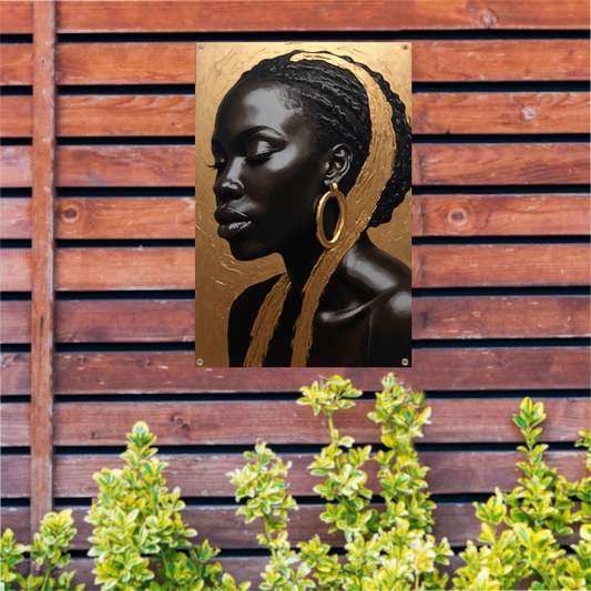 Vrouwengezicht in Zwart, Wit en Goud tuinposter