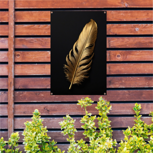 Glimmende Gouden Veer op Zwarte Achtergrond tuinposter